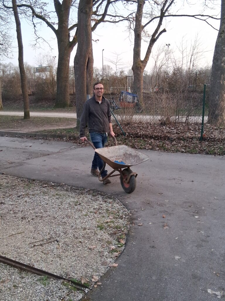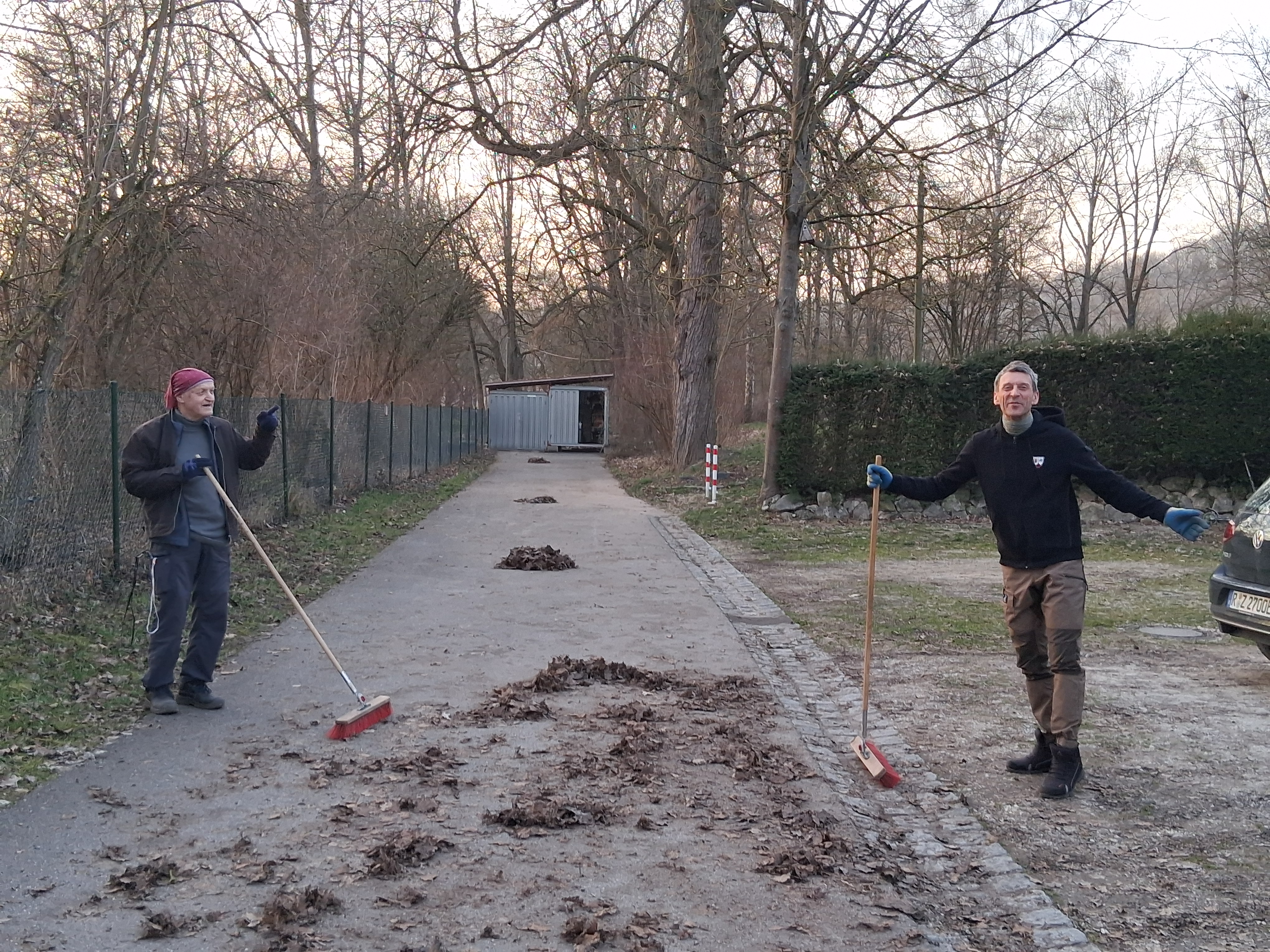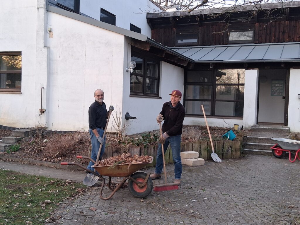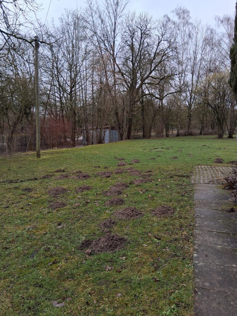 Bei strahlendem Wetter haben wir bis in die Dämmerung hinein nicht nur wie geplant die Maulwurfshaufen beseitigt, sondern auch zahlreiche zusätzliche Aufgaben erledigt.